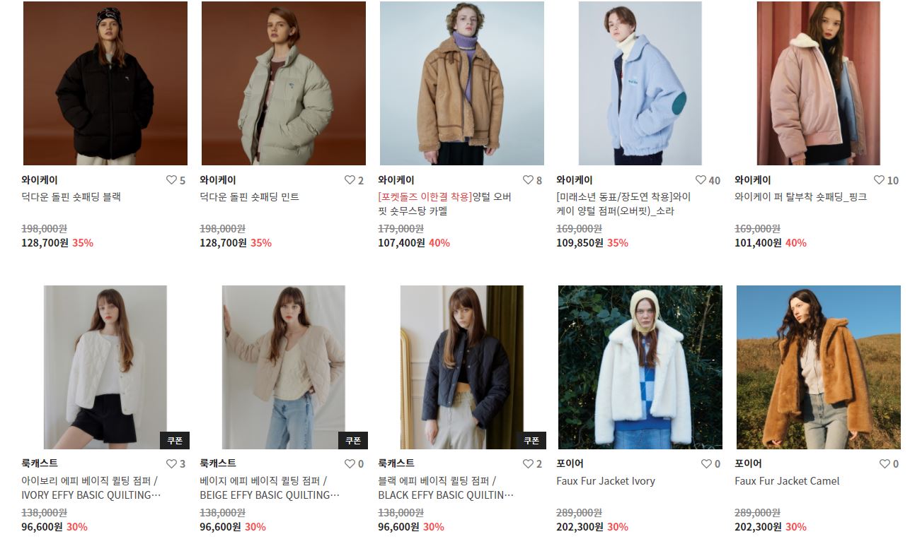 할인 품목 : 코트, 점퍼 등
