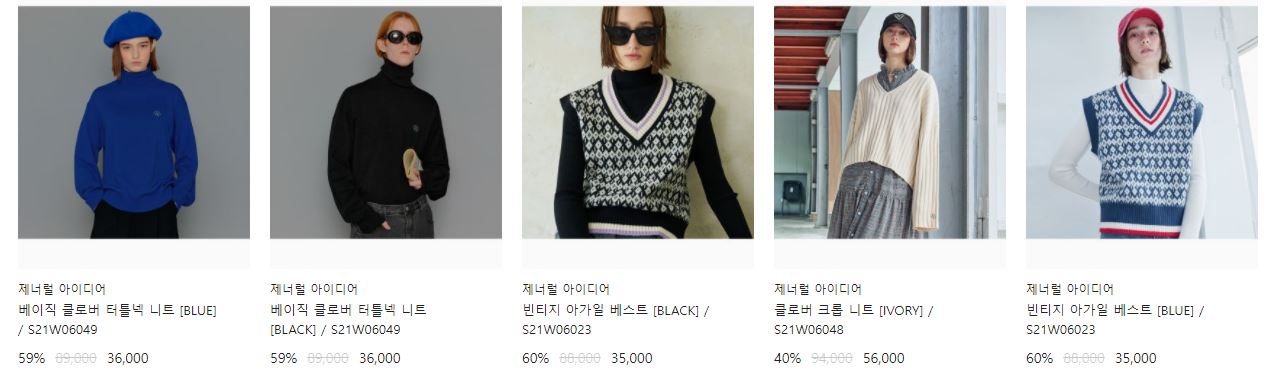 할인 품목 : 코트, 점퍼, 니트 등