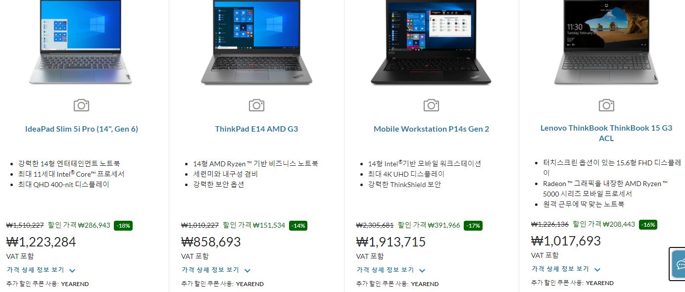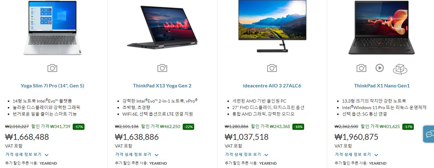레노버 사이트에서 할인 이벤트를 진행하네요.