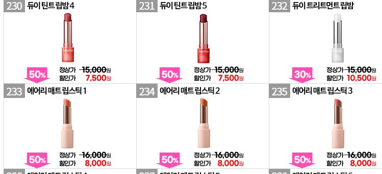 할인 품목 : 클렌저, 립스틱, 앰플 등