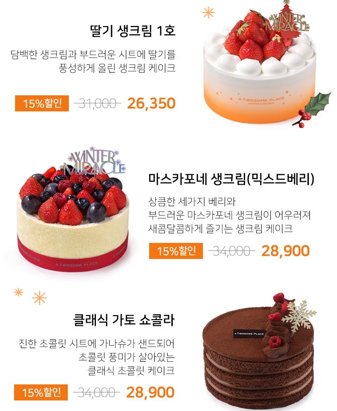 투썸플레이스 X-MAS 케이크 15% 할인 정보 [링크]