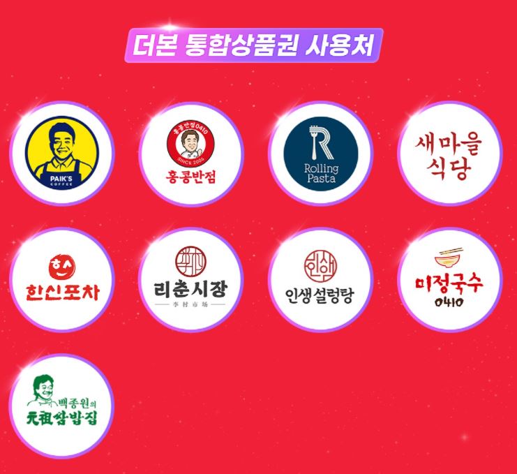 사용처 : 빽다방, 홍콩반점, 새마을식당 등