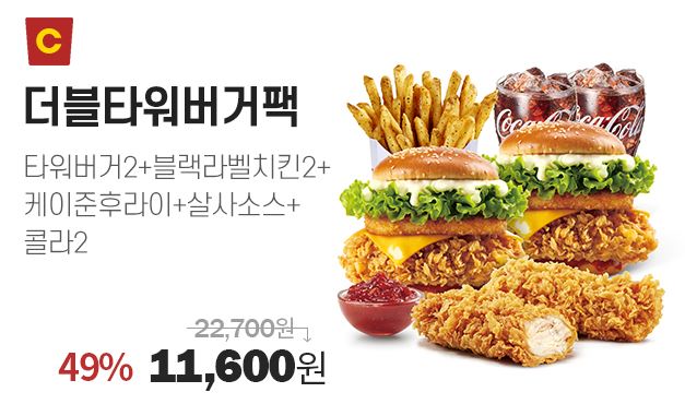 할인 메뉴 : 징거텐더세트, 더블타워버거팩 등