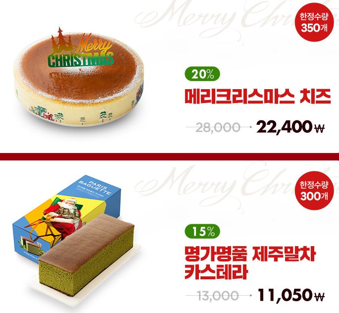 파리바게뜨 X-mas 기념 최대 20% 할인 정보 [링크]