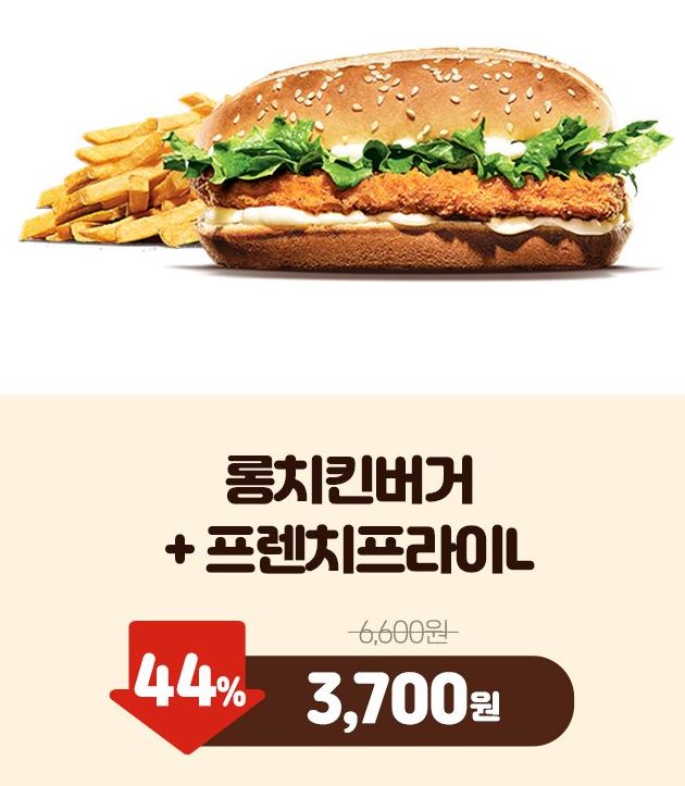 할인 메뉴 : 갈릭불고기와퍼, 롱치킨버거 등