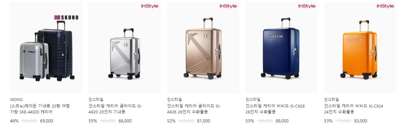 할인 품목 : 캐리어, 크로스백 등