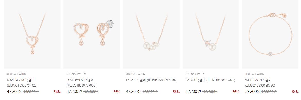 할인 품목 : 목걸이, 귀걸이, 시계 등