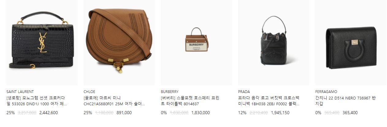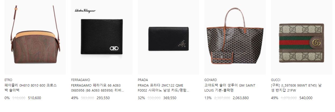 할인 품목 : 가방, 지갑, 시계 등