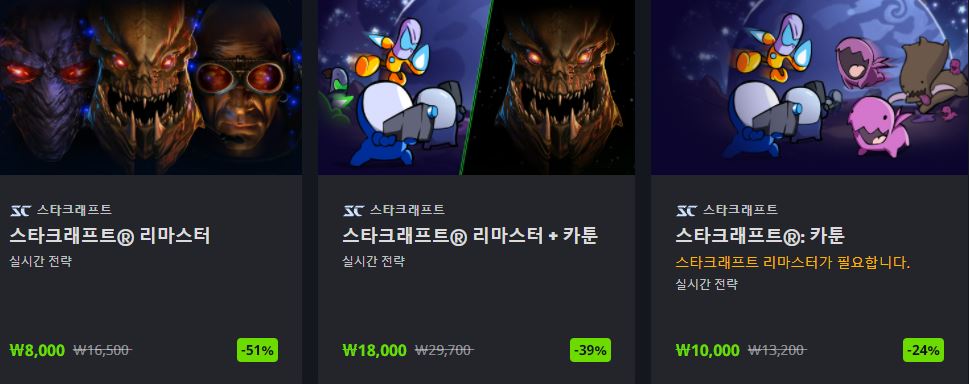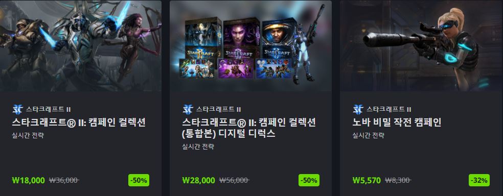 할인 품목 : 디아블로2 레제렉션, 오버워치, 스타크래프트 등