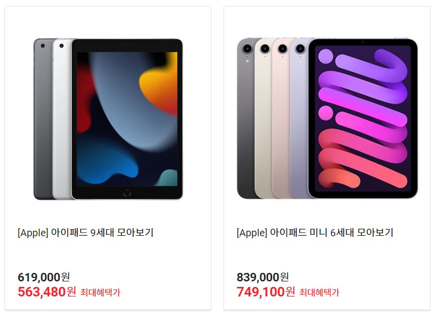 할인 품목 : 휴대폰, 아이패드, 애플워치 등