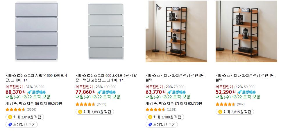 할인 품목 : 서랍장, 선반 등