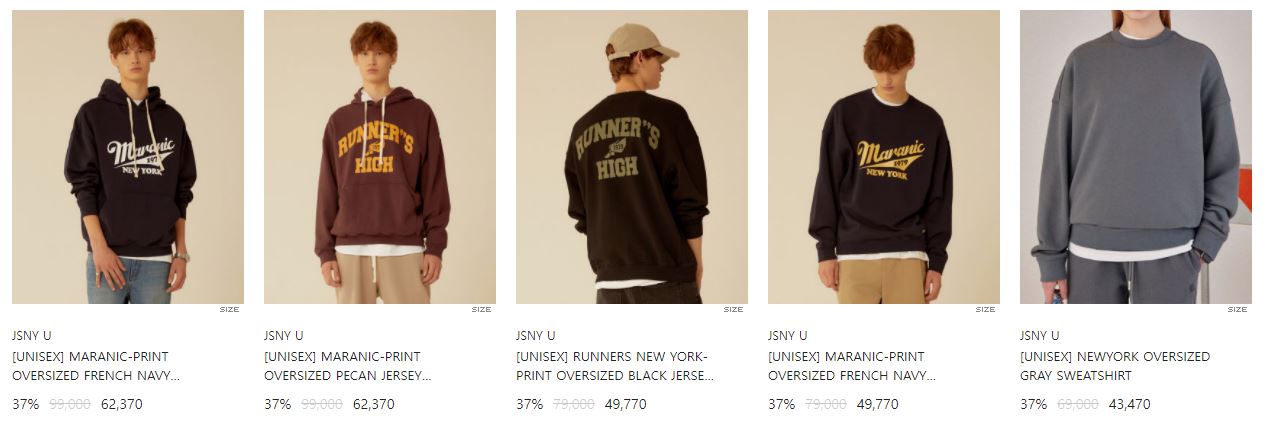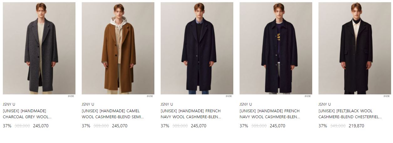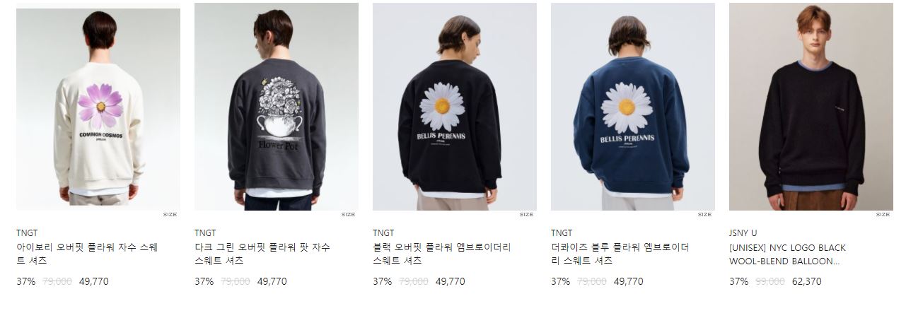 할인 품목 : 코트, 점퍼, 티셔츠 등