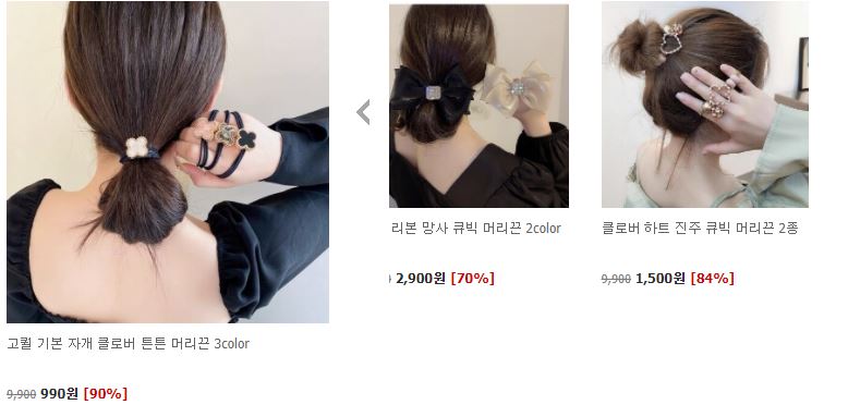 할인 품목 : 집게핀, 헤어밴드, 머리끈 등
