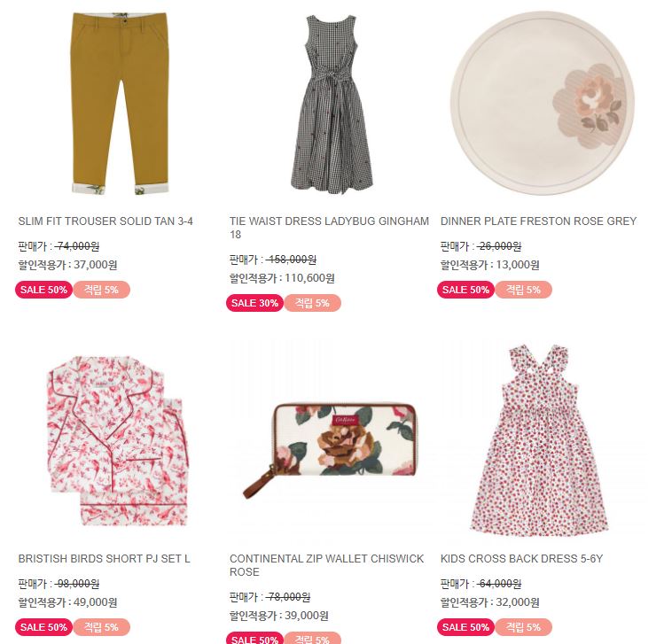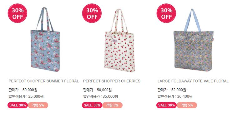 할인 품목 : 의류, 가방, 지갑 등