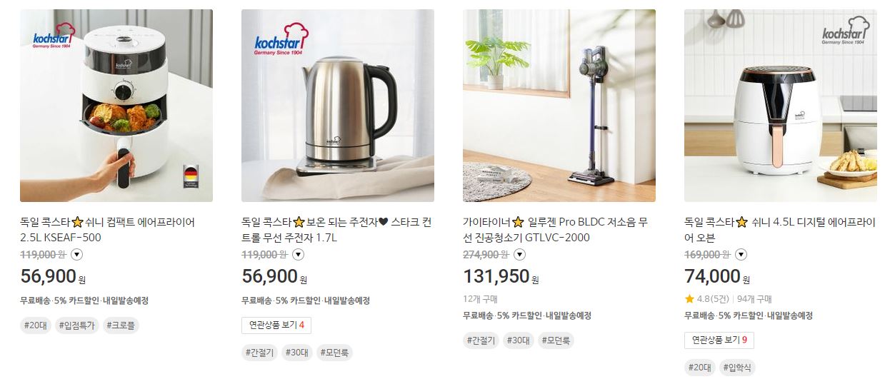 할인 품목 : 와플메이커, 신발, 에어프라이어 등