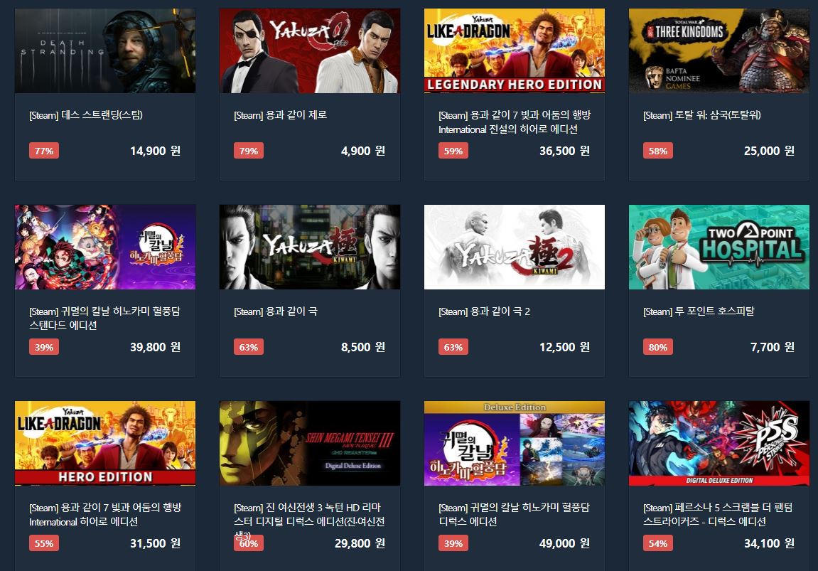 다이렉트 게임즈 다양한 게임을 할인 판매하네요.