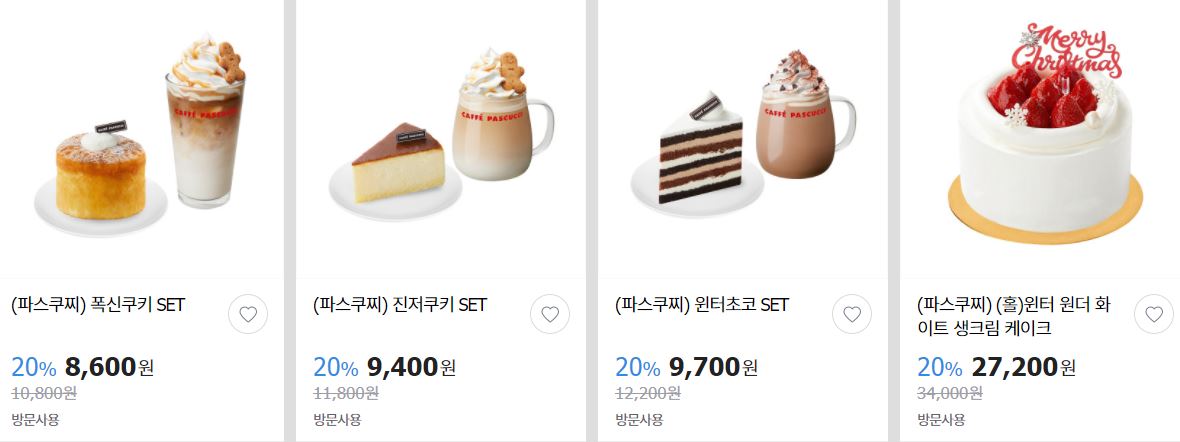 할인 브랜드 : 배스킨라빈스, 투썸플레이스, 파스쿠찌 등