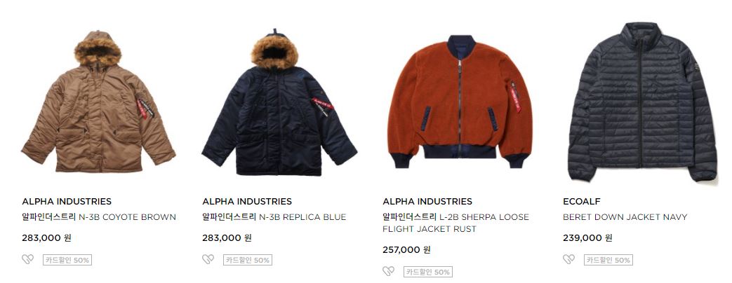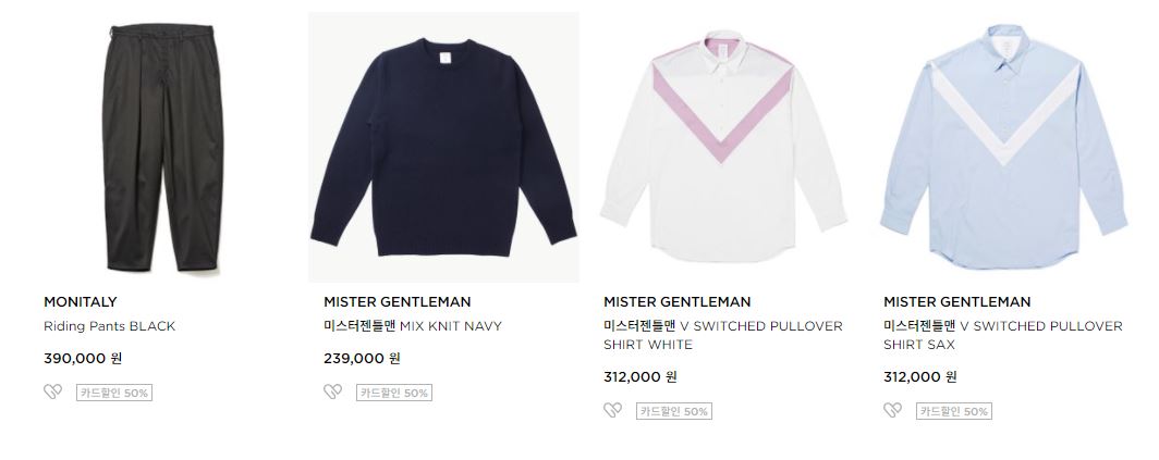 할인 품목 : 카드케이스, 점퍼, 니트 등