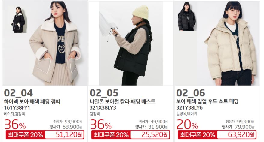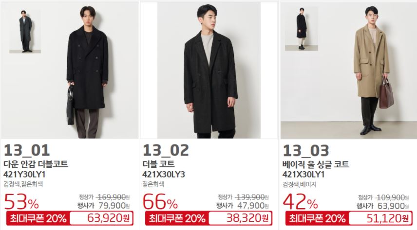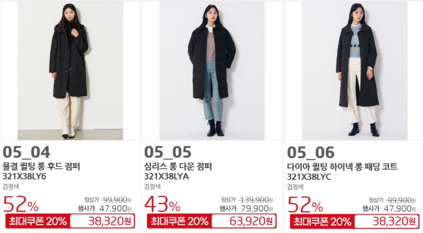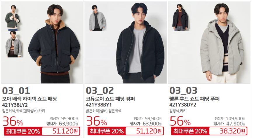 할인 품목 : 점퍼, 코트 등