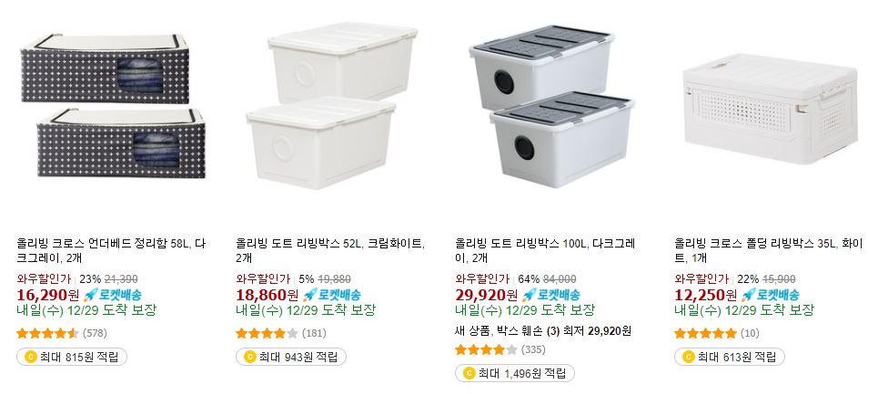할인 품목 : 리빙박스, 옷걸이, 선반 등