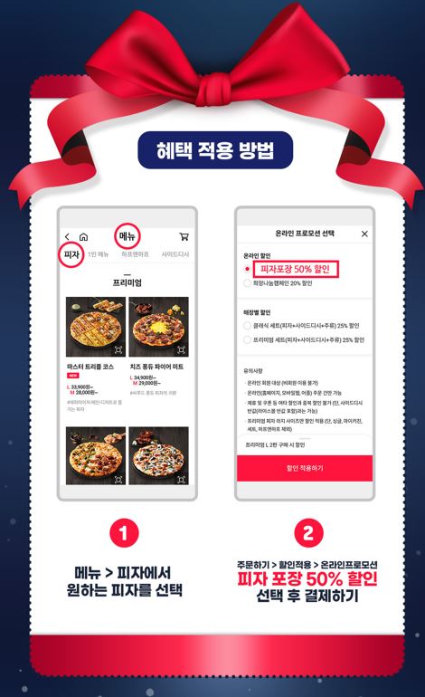 도미노피자 포장 50% 할인 정보 포스팅입니다.
