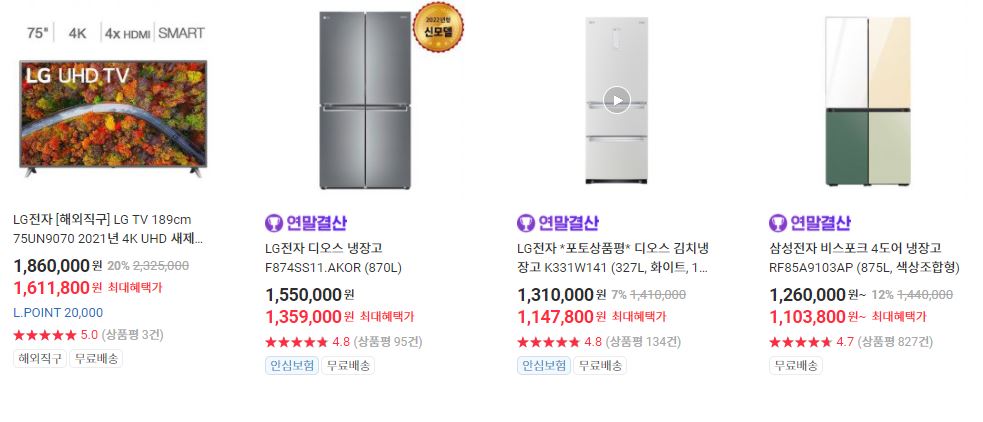 할인 품목 : 컴퓨터, 마우스, 노트북, 냉장고 등