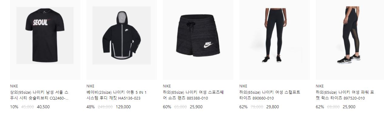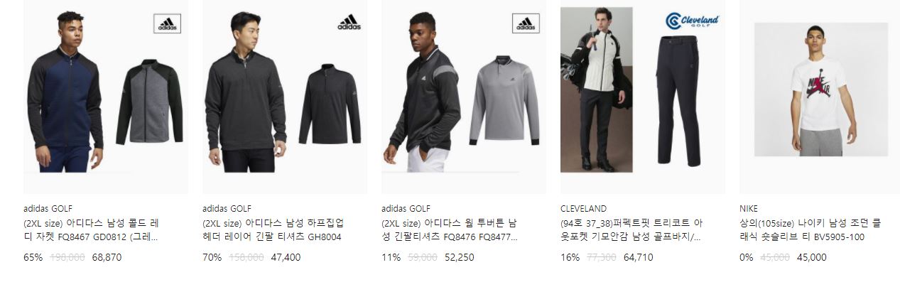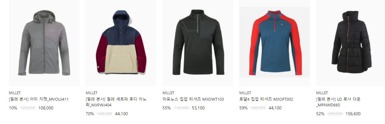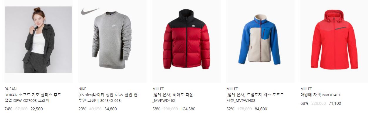 할인 품목 : 점퍼, 운동화, 티셔츠 등