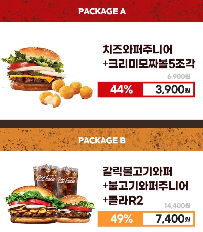 할인 메뉴 : 치즈와퍼주니어+크리미모짜볼5조각 등