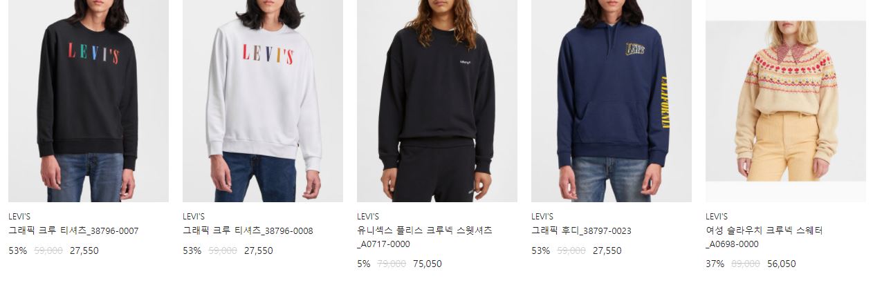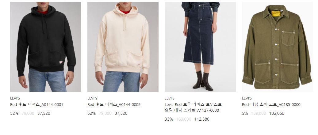 할인 품목 : 청바지, 후드티, 자켓 등