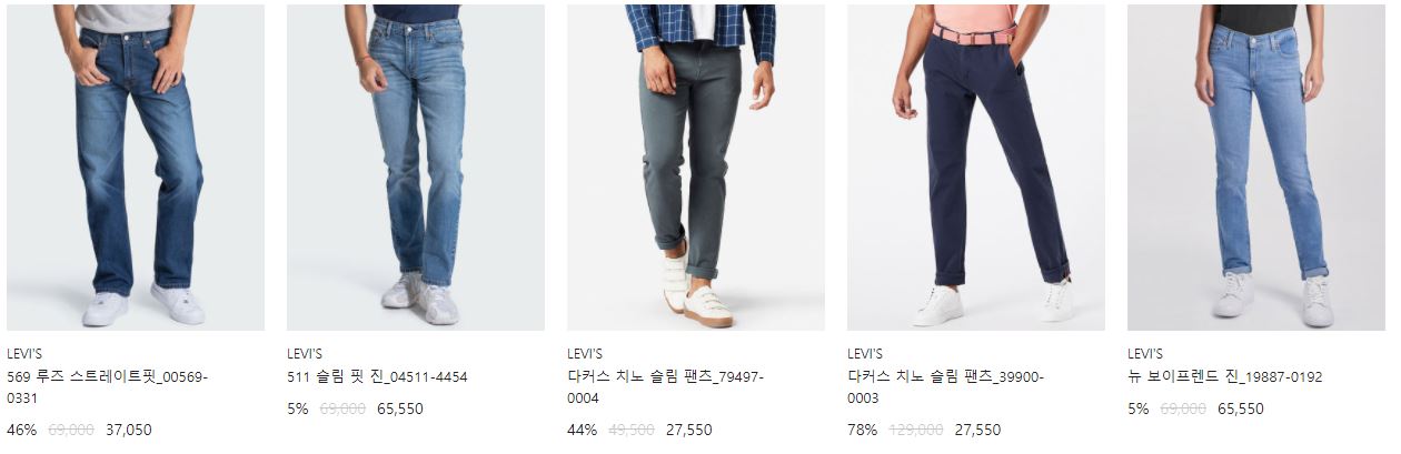 리바이스 다양한 제품을 할인 판매하네요.
