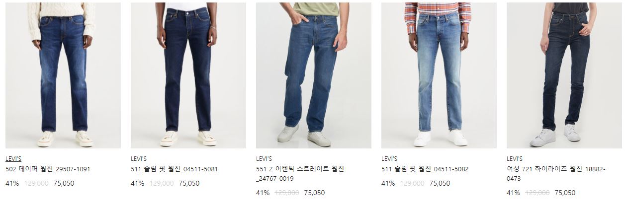 리바이스 다양한 제품을 할인 판매하네요.
