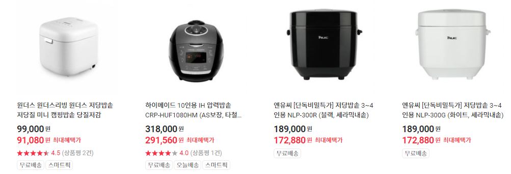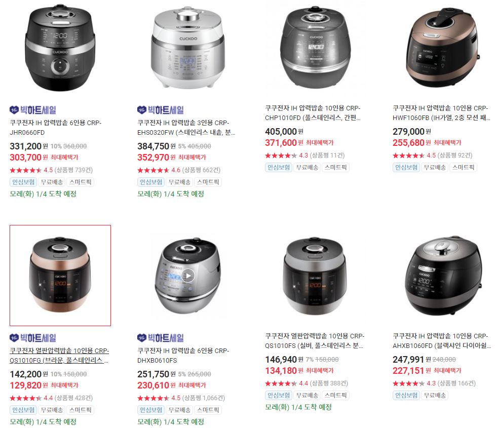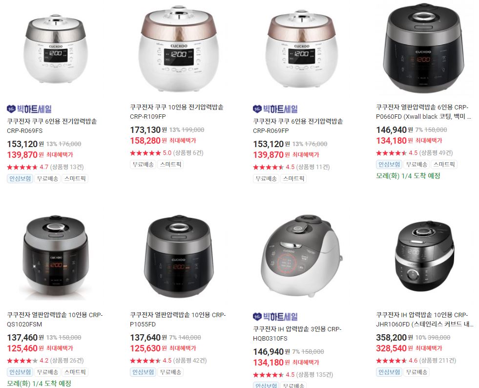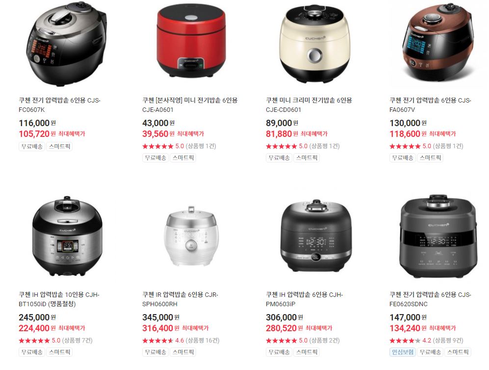 할인 브랜드 : 쿠쿠, 쿠첸 등