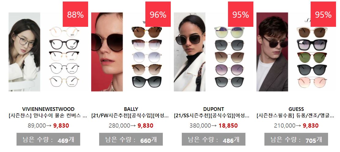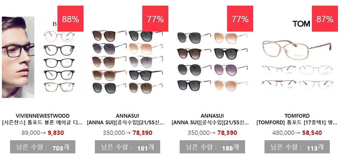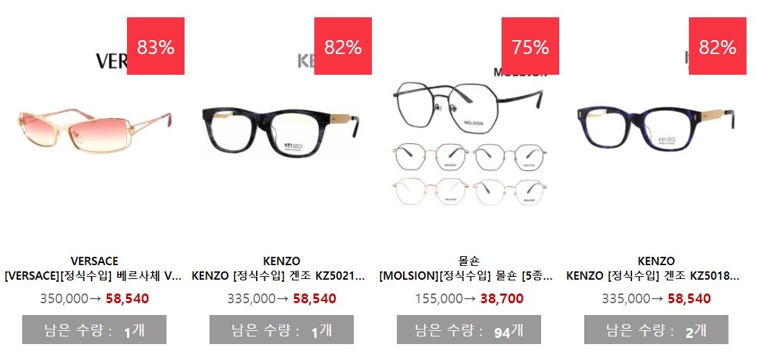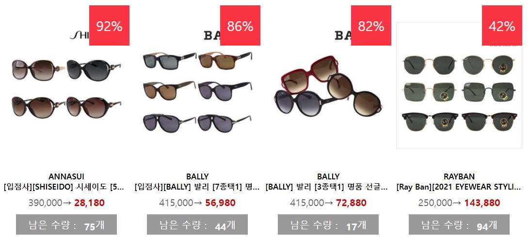 할인 브랜드 : 겐조, 레이벤, 안나수이 등