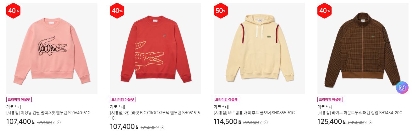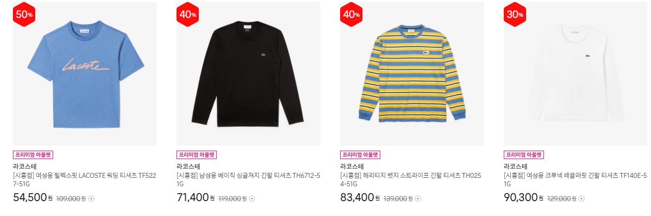 라코스테 다양한 제품을 할인 판매하네요.
