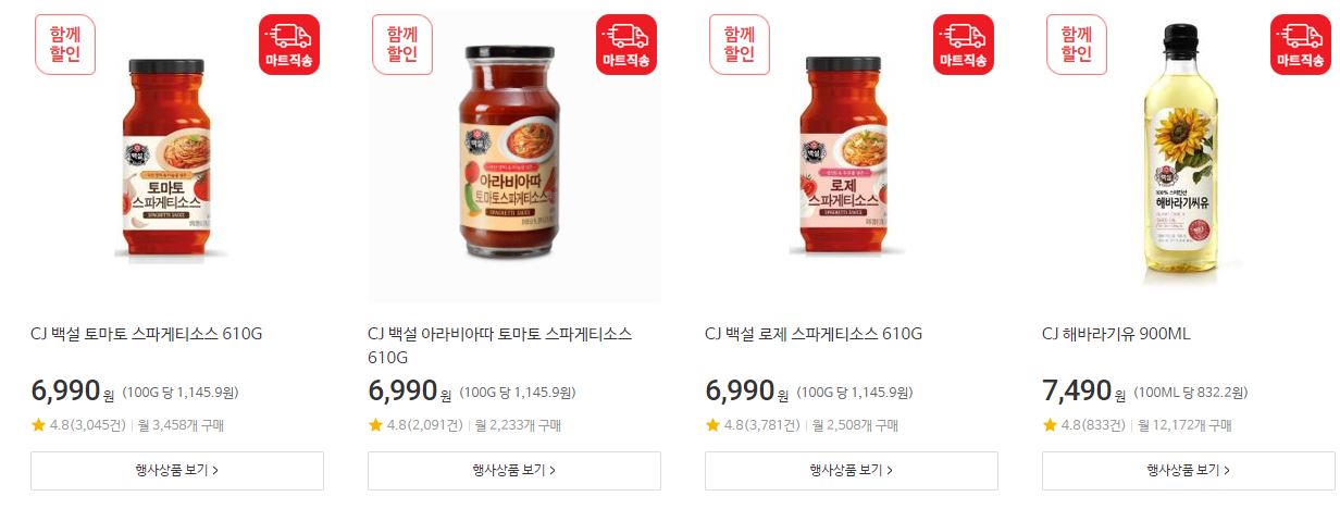 할인 품목 : 스파게티소스, 음료, 과자 등