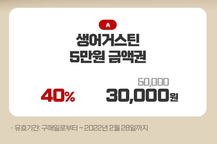 생어거스틴 5만원 자유이용권 40% 할인 정보 [링크]