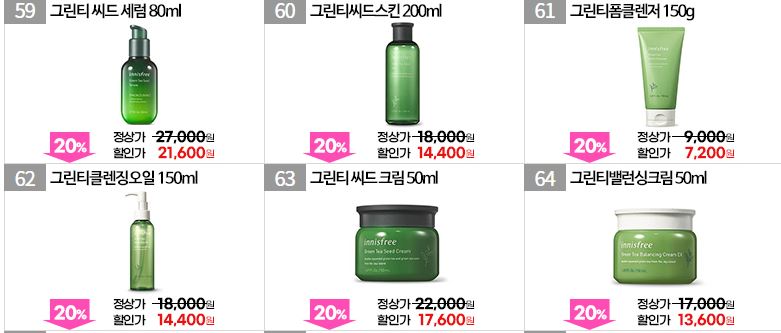 이니스프리 다양한 제품을 할인 판매하네요.