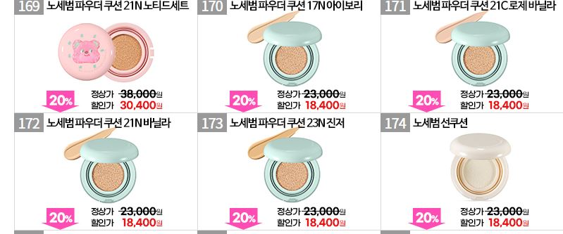 할인 품목 : 수분크림, 마스크, 쿠션 등