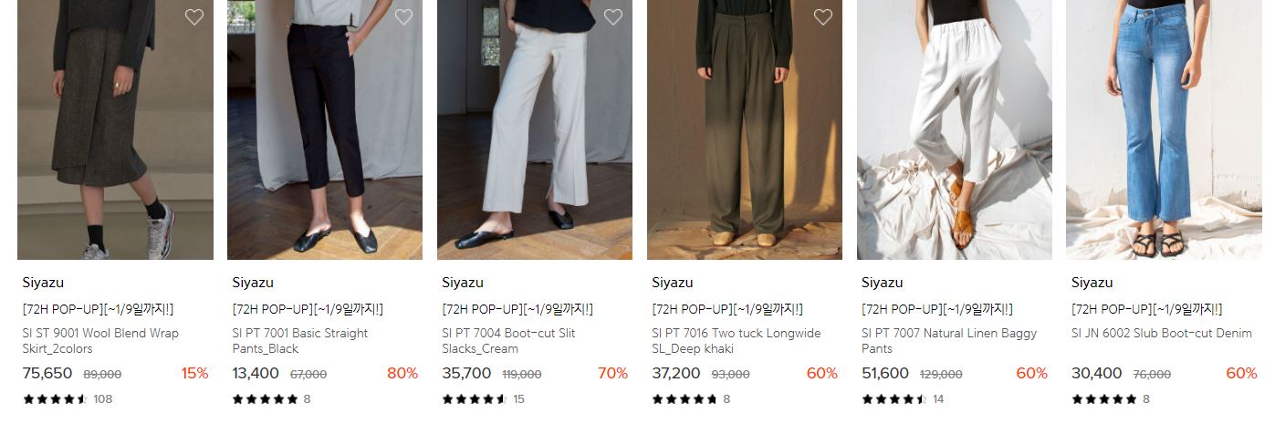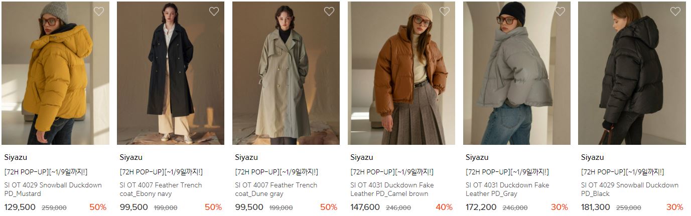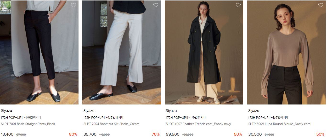 할인 품목 : 팬츠, 코트, 점퍼 등