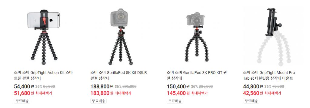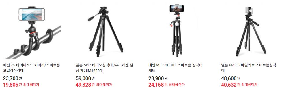 할인 품목 : 삼각대, 가방, 셀카봉 등
