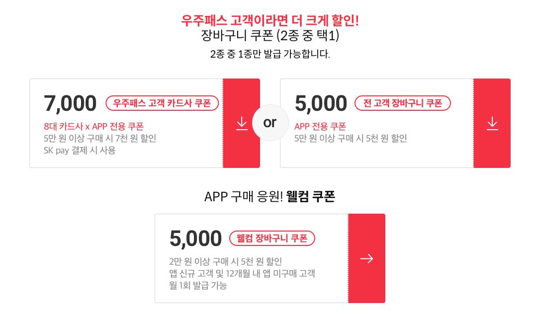 할인 품목 : 가전, 식품, 의류 등