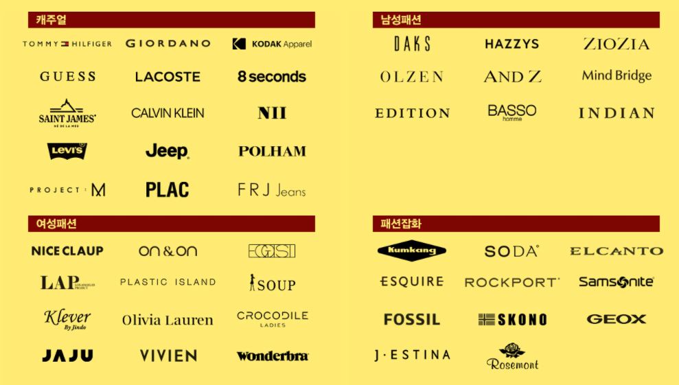 할인 품목 : 의류, 신발, 가방 등