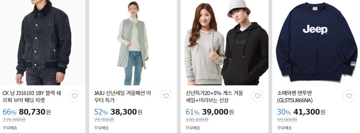 할인 품목 : 의류, 신발, 가방 등