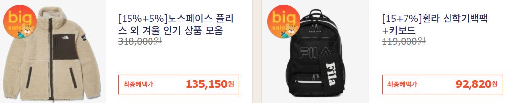 할인 품목 : 로봇청소기, 의류, 모니터 등