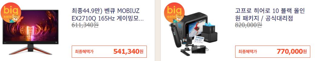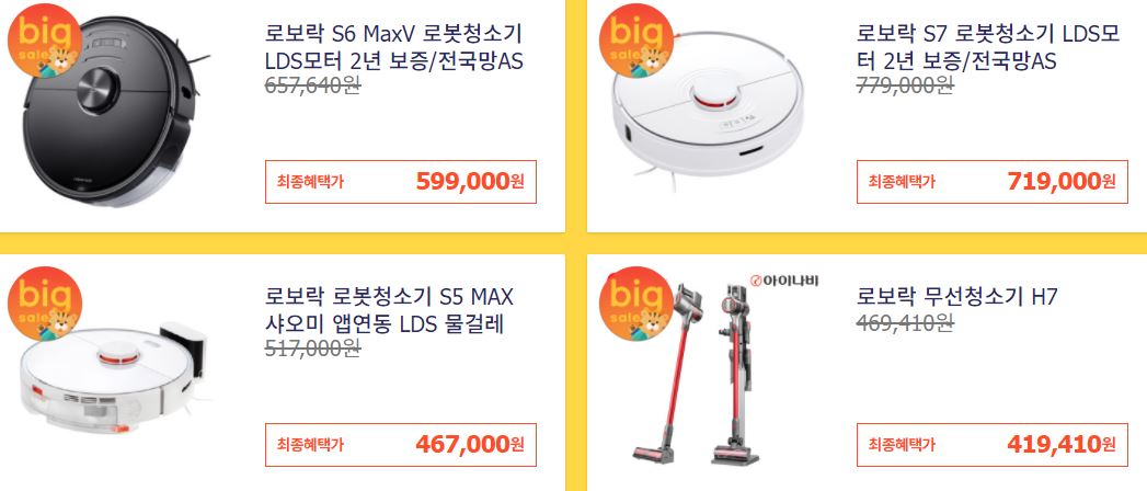 할인 품목 : 로봇청소기, 의류, 모니터 등