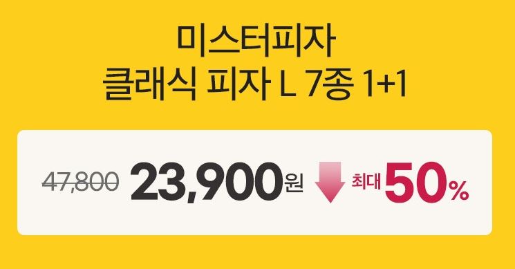 미스터피자 다양한 메뉴를 할인 판매하네요.