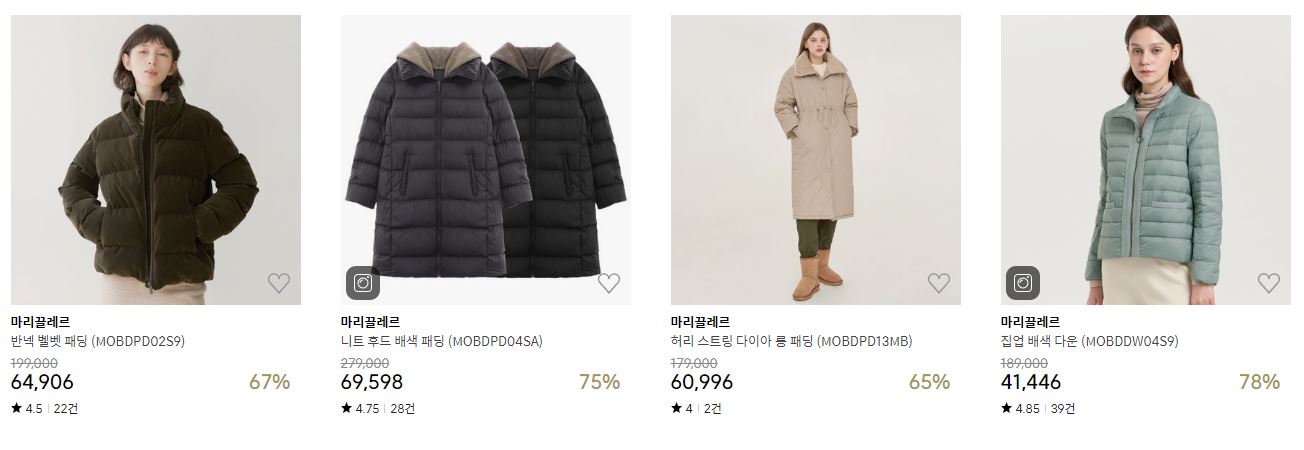 할인 품목 : 코트, 점퍼, 팬츠 등