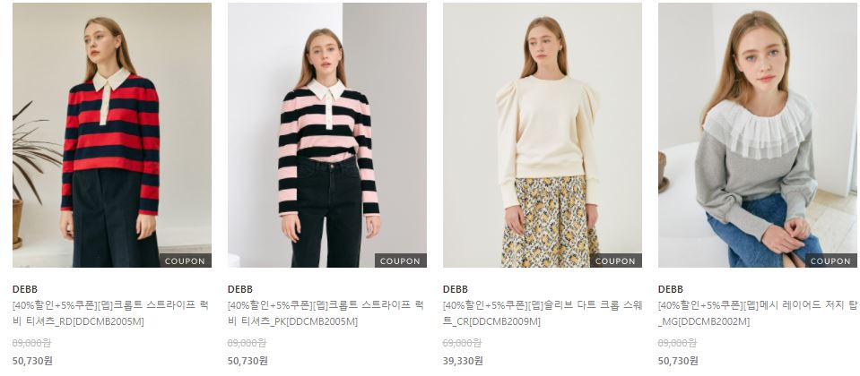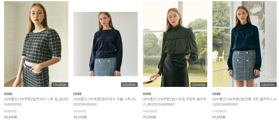 할인 품목 : 블라우스, 티셔츠, 스커트 등