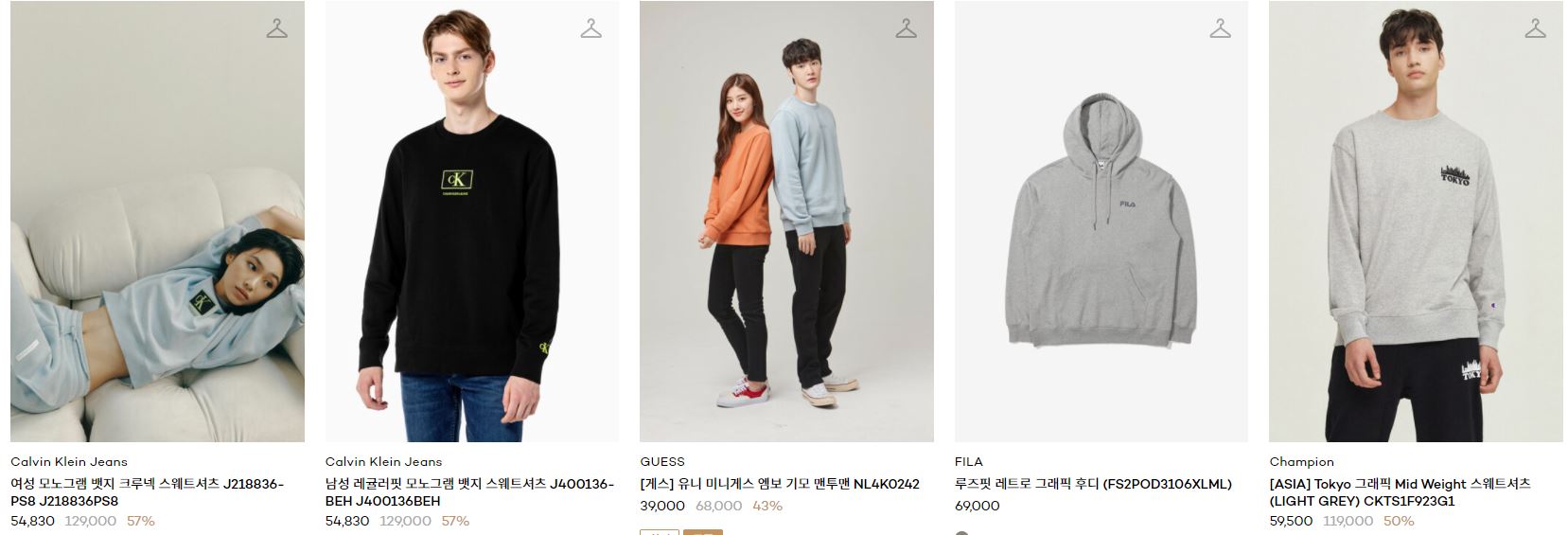 할인 품목 : 점퍼, 티셔츠, 팬츠 등