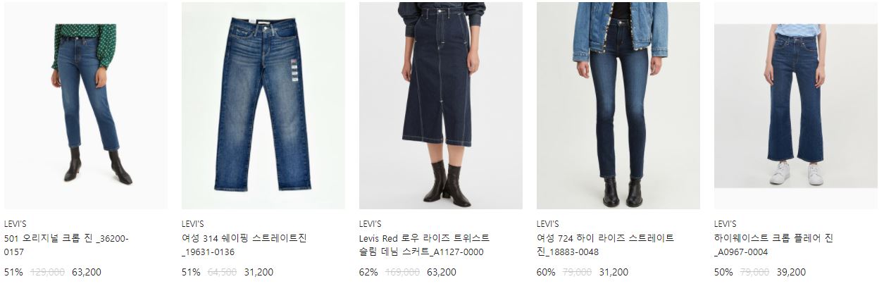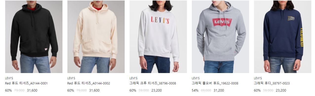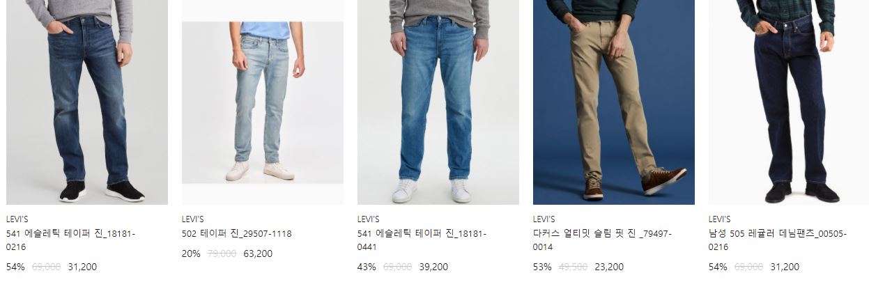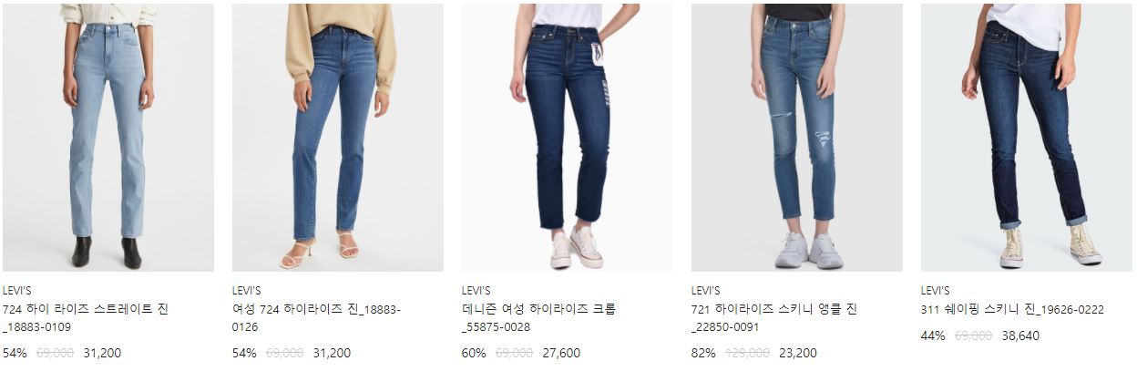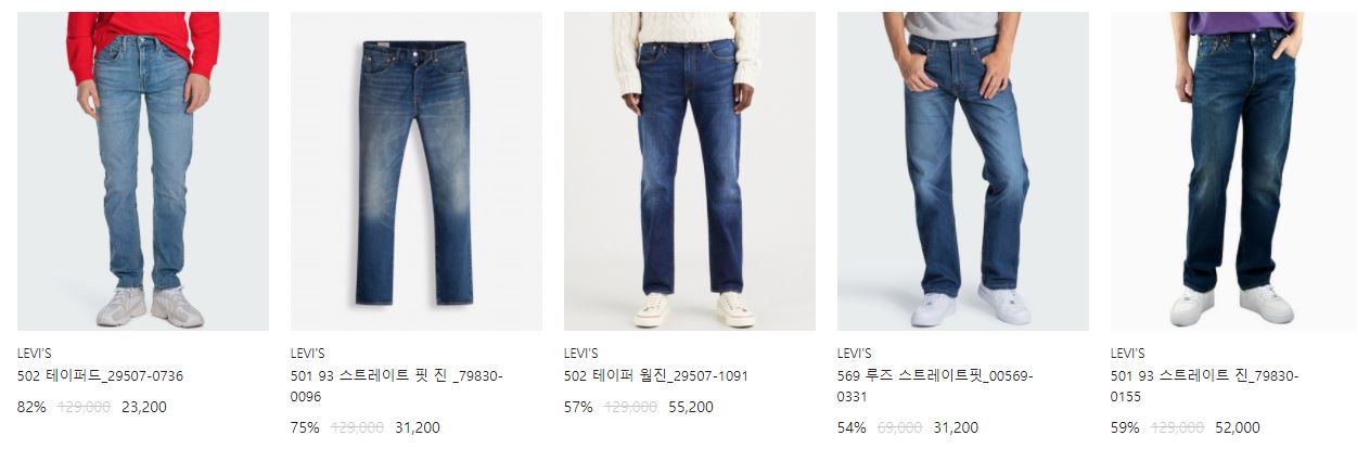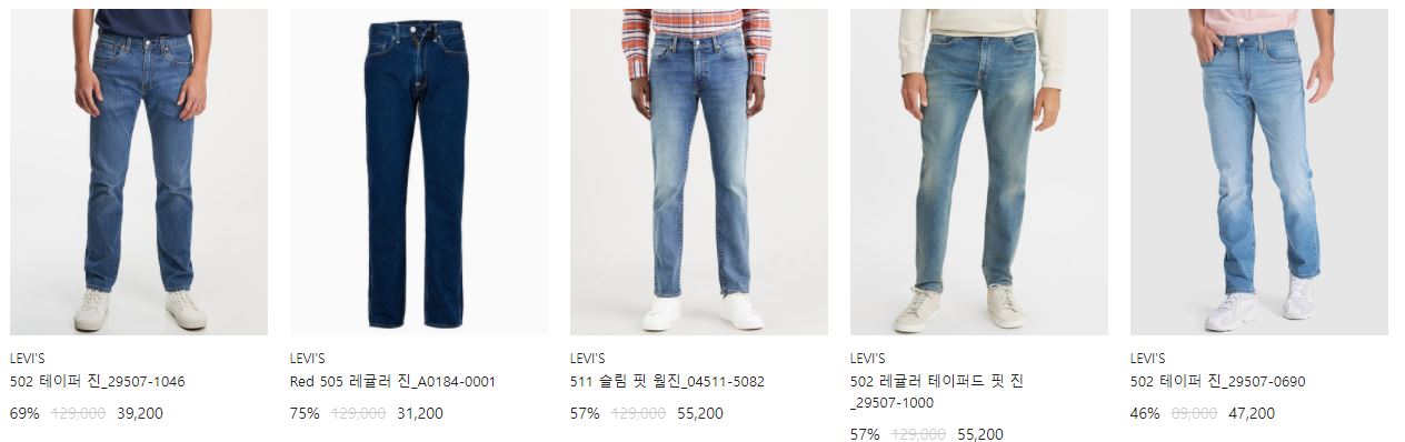 리바이스 다양한 제품을 할인 판매하네요.